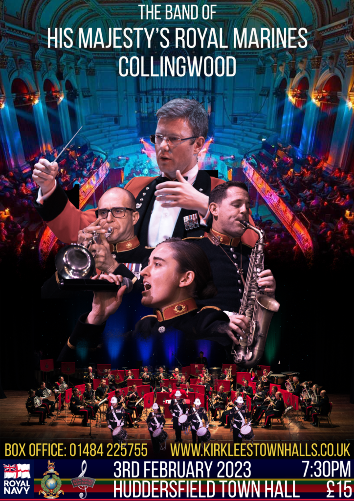The Band of His Majesty’s Royal Marines will be conducting concerts in Huddersfield Town Hall on Fri 3rd Feb 23 and Hull Minster on Sat 4 Feb 23. Details of times and how to purchase tickets can be found on the attached posters. It aims to be a thoroughly enjoyable event conducted by one of the World’s most prestigious and renowned Military Bands.