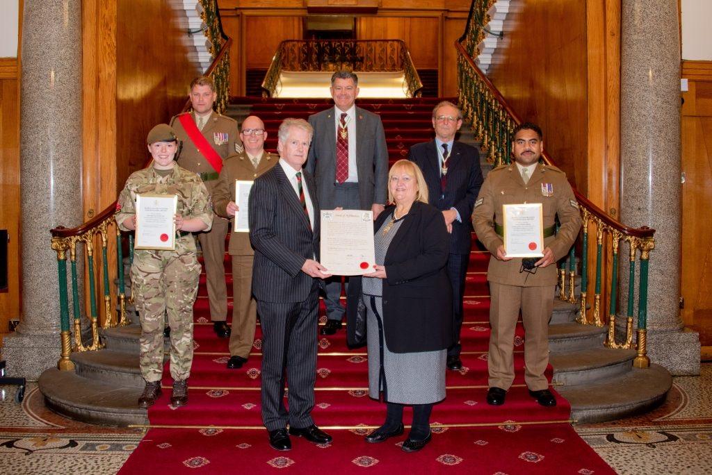 In the grand setting of the fabulous 17th century Cutlers Hall in #Sheffield, The Company of Cutlers in Hallamshire have recognised the achievements of members of The Yorkshire Regiment and regional Army Cadets UK, marking the commencement of a long-term friendship and affiliation between the Cutlers and the only county-named regiment left in the British Army. The awards were made in front of fellow Cutlers, Commanding Officers, families and friends by Master Cutler Dame Julie Kenny DBE DL, only the second Lady Master Cutler in the long and distinguished history of the Cutlers’ Company.