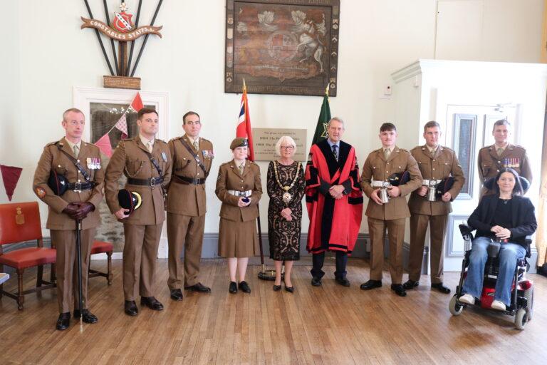 The Freedom of a City, Town or Borough is an ancient ceremonial honour, usually bestowed upon a unit with historic ties to the area, as a token of appreciation for their long and dedicated service, allowing them the privilege to march into the city “with drums beating, colours flying, and bayonets fixed”.